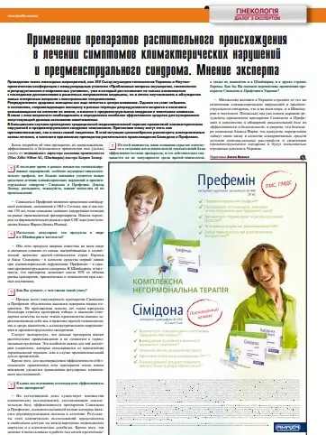 Применение препаратов растительного происхождения в лечении симптомов климактерических нарушений и предменструального синдрома.