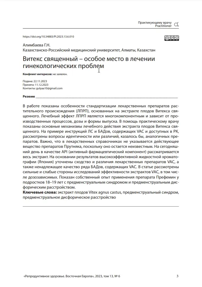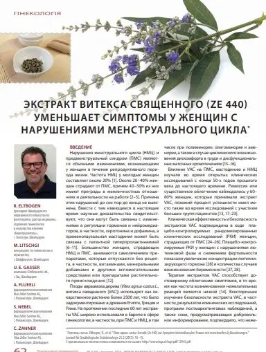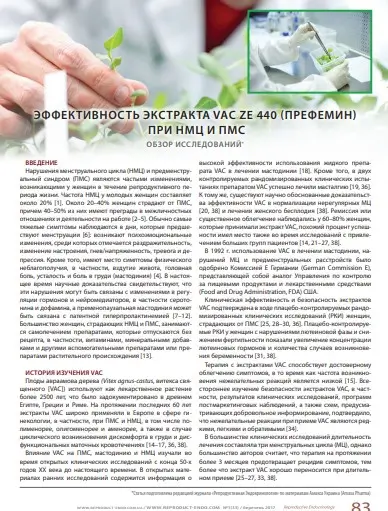 Префемин (Экстракт Витекса Священного (Ze 440) уменьшает симптомы у женщин с нарушениями менструального цикла. Репродуктивная эндокринология