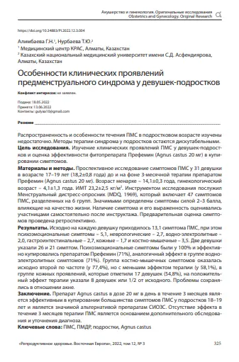 Особенности клинических проявлений предменструального синдрома у девушек-подростков.